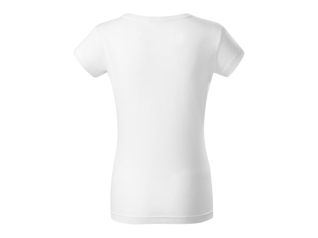 Tričko má lehce vypasovaný dámský střih s bočními švy, který působí elegantně a zároveň pohodlně padne na tělo. Průkrčník je olemován žebrovým úpletem, který dodává tričku nejen pevnost, ale i jemný detail, který působí upraveně. Zpevnění ramenních švů páskou pak zvyšuje odolnost i při častém nošení a praní.