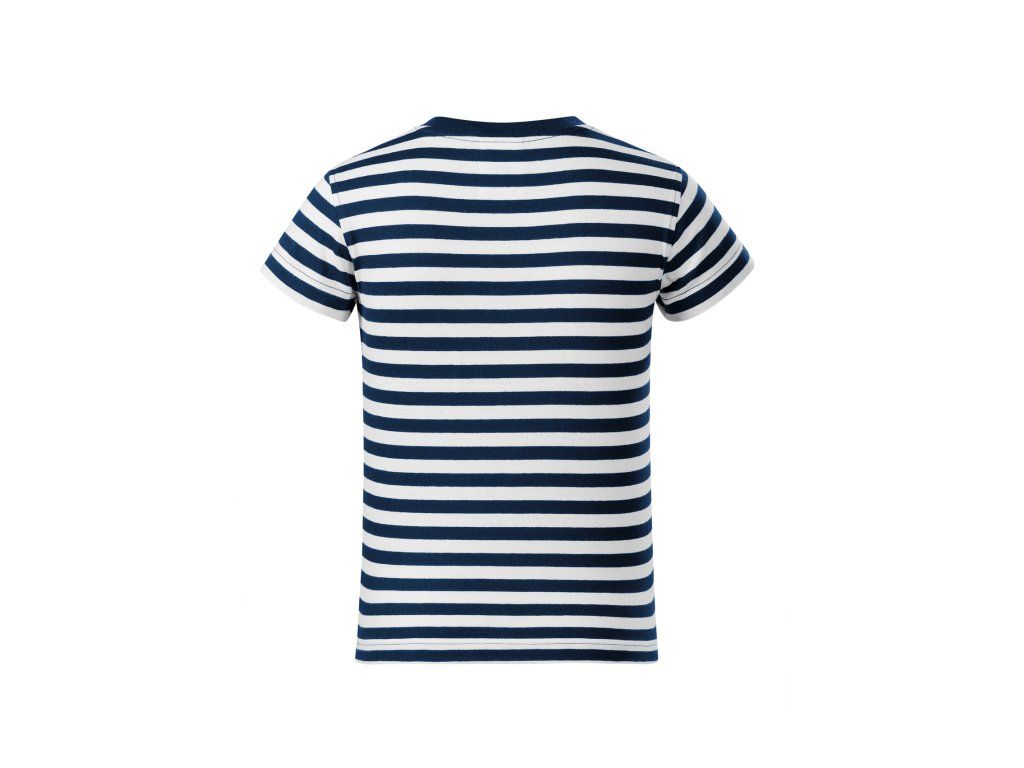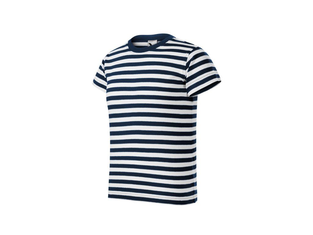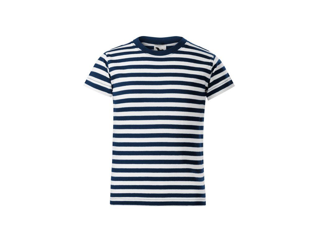 Dětské tričko s krátkým rukávem přinášející do dětského šatníku osvědčený námořnický design v moderním a pohodlném provedení. Kombinace bílé a námořní modré v klasickém pruhovaném vzoru působí svěže, univerzálně a hravě – skvěle se hodí jak na každodenní nošení, tak i na školní výlety, volný čas nebo rodinné akce.