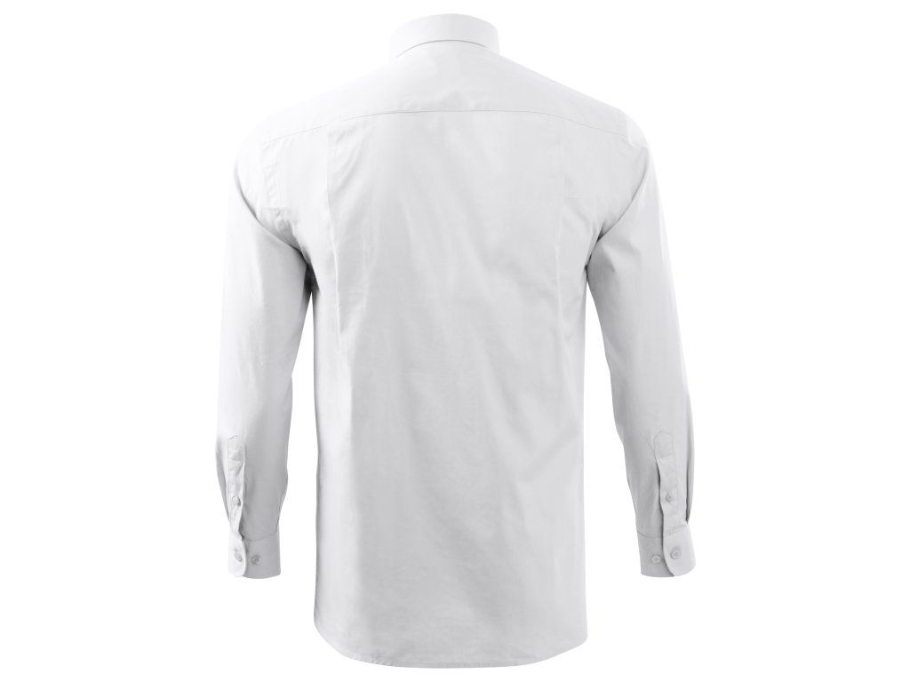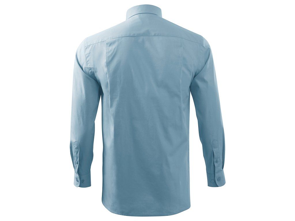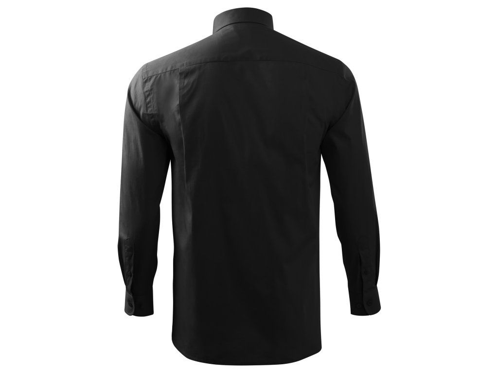 Košile má klasický střih s bočními švy, který dobře padne většině postav a zároveň poskytuje dostatek prostoru pro pohodlný pohyb. Dvojité sedlo a záhyby na zadním dílu zajišťují lepší přizpůsobení postavě a dodávají košili upravený vzhled. Dvoudílný košilový límec navíc drží dobře tvar a umožňuje nošení s kravatou i bez ní.