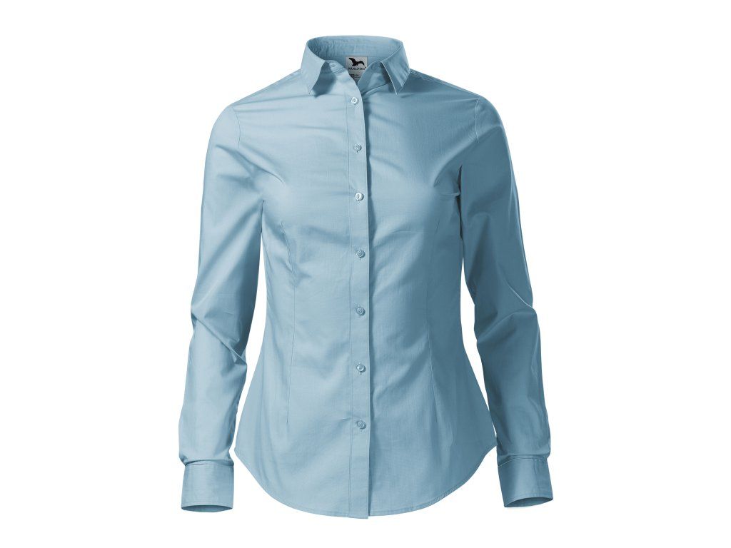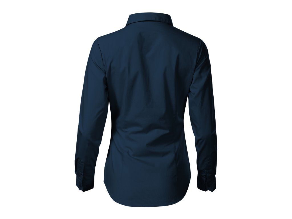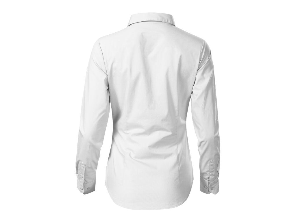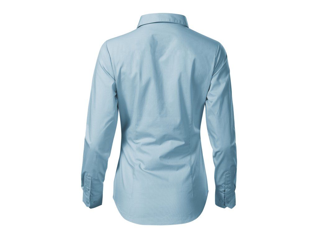 Dámská košile s dlouhým rukávem v moderním projmutém střihu s bočními švy, vyrobená z vysoce kvalitního a pohodlného bavlněného popelínu zaručujícího vynikající odolnost a vysoký komfort.