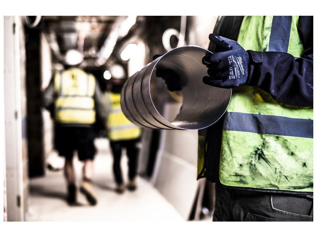 Hlavním ochranným prvkem je dvojitá vrstva nitrilu v dlani a na prstech. Ta zajišťuje vynikající ochranu před proříznutím, propíchnutím i oděrem, čímž zvyšuje životnost rukavic i bezpečnost. Nitril má navíc výbornou přilnavost i na mastných a mokrých površích a zachovává si pružnost v různých teplotních podmínkách.