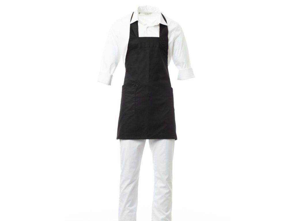 Elegantní a praktická unisex zástěra, navržená pro profesionály v gastronomii, hotelnictví a maloobchodu, vyrobená z bavlněného kepru s příměsí elastického vlákna pro maximální komfort.