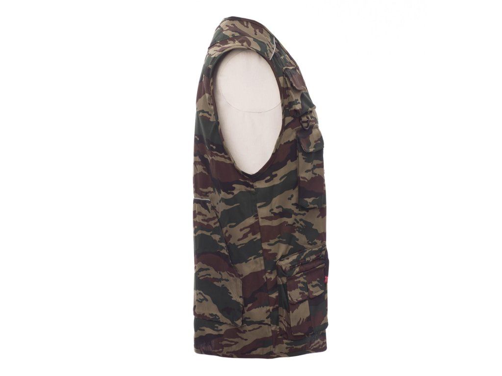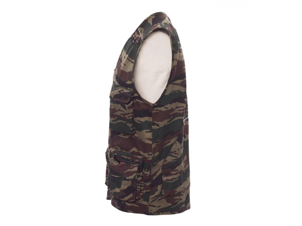 Vesta je vybavena předním zipem a zejména systémem kapes, který umožňuje mít všechny potřebné pomůcky vždy po ruce. Na přední straně najdete víceúčelové kapsy, včetně horní kapsy na levé straně, která je doplněna oboustranným pouzdrem na jmenovku a reflexním doplňkem, a zadní straně se nachází velká lovecká kapsa.
