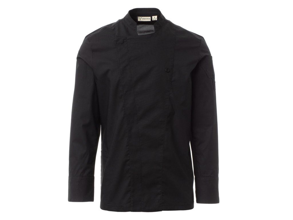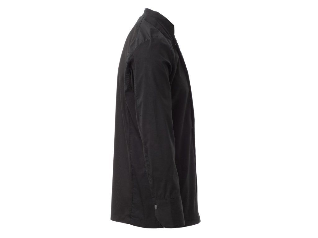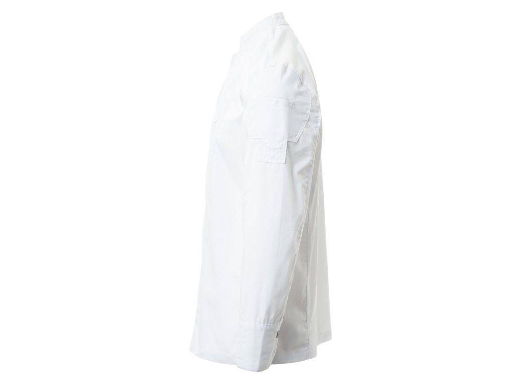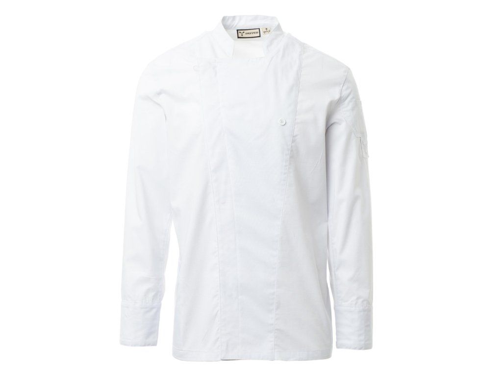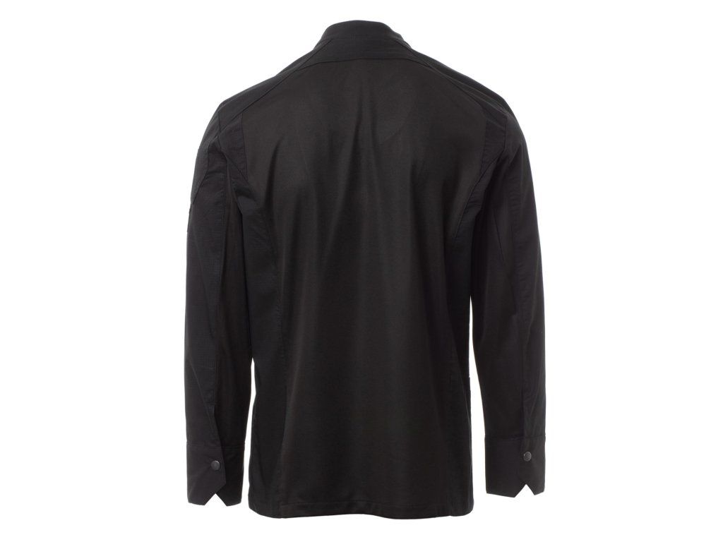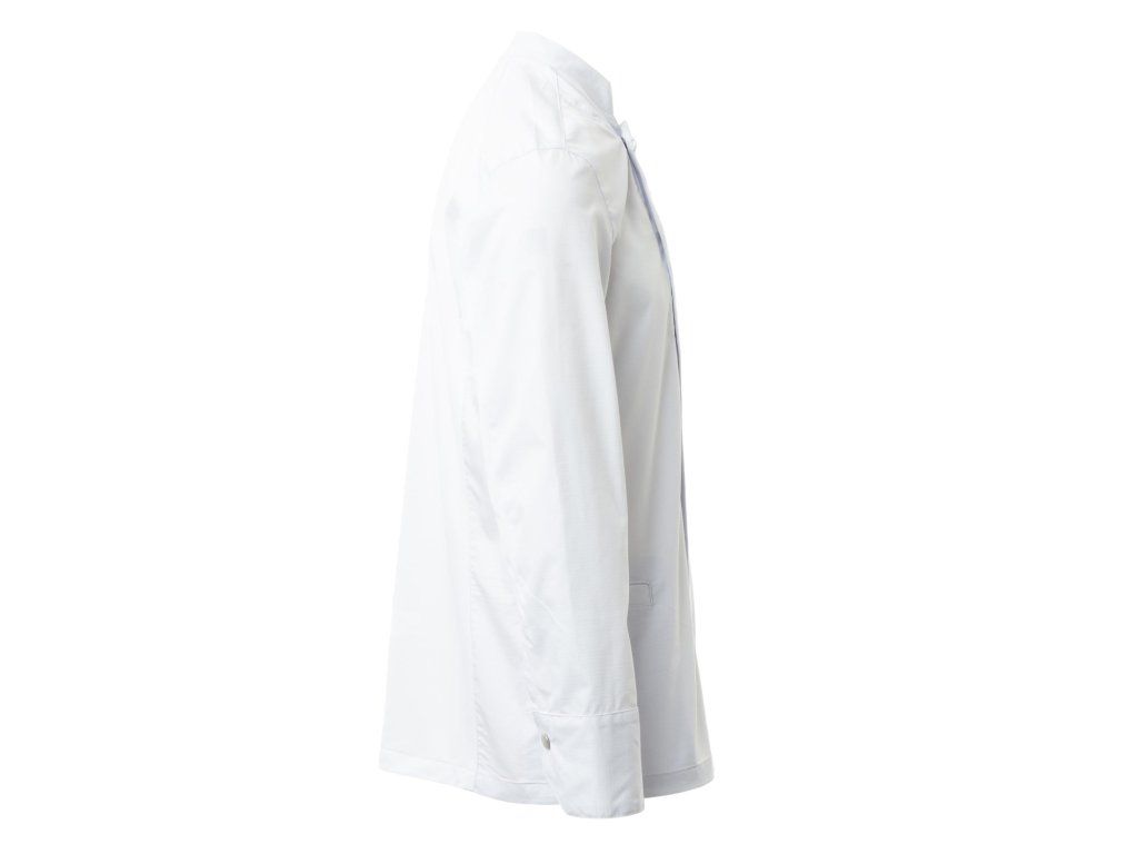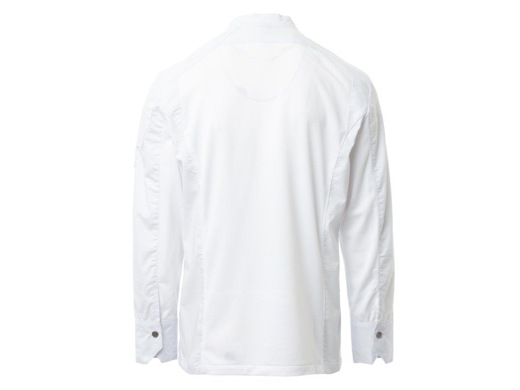 Rondon je vybaven pohodlnou síťovinou na zádech, v podpaží a v průramkách, která zajišťuje maximální ventilaci a efektivní odvod tepla, což ocení kuchaři v horkých provozech. Dvouřadé zapínání na patentky umožňuje snadné oblékání, zatímco překlápěcí klopa s nezakrytým knoflíkem umožňuje originální výstřih do V.
