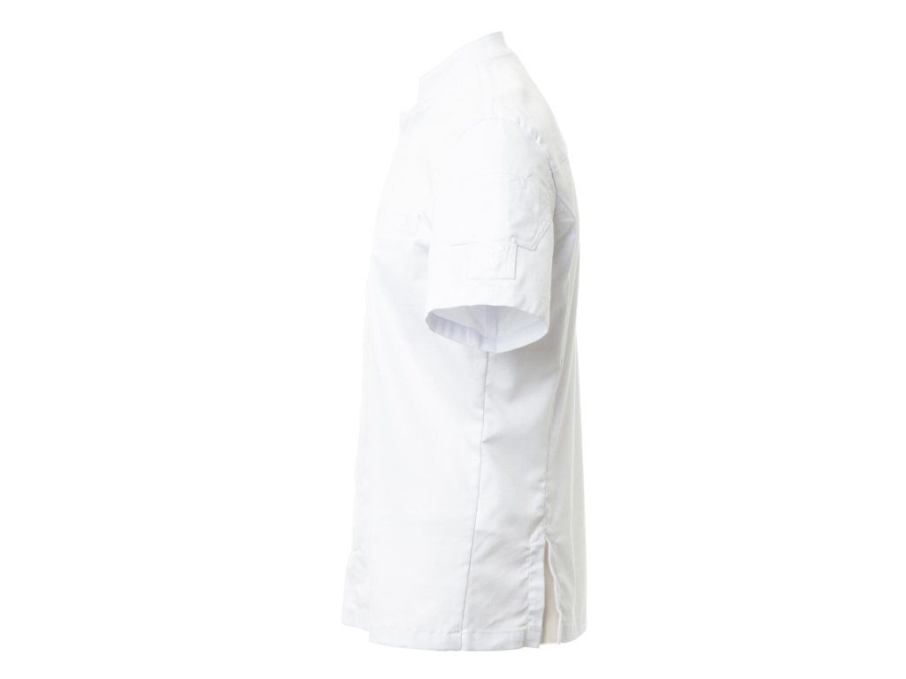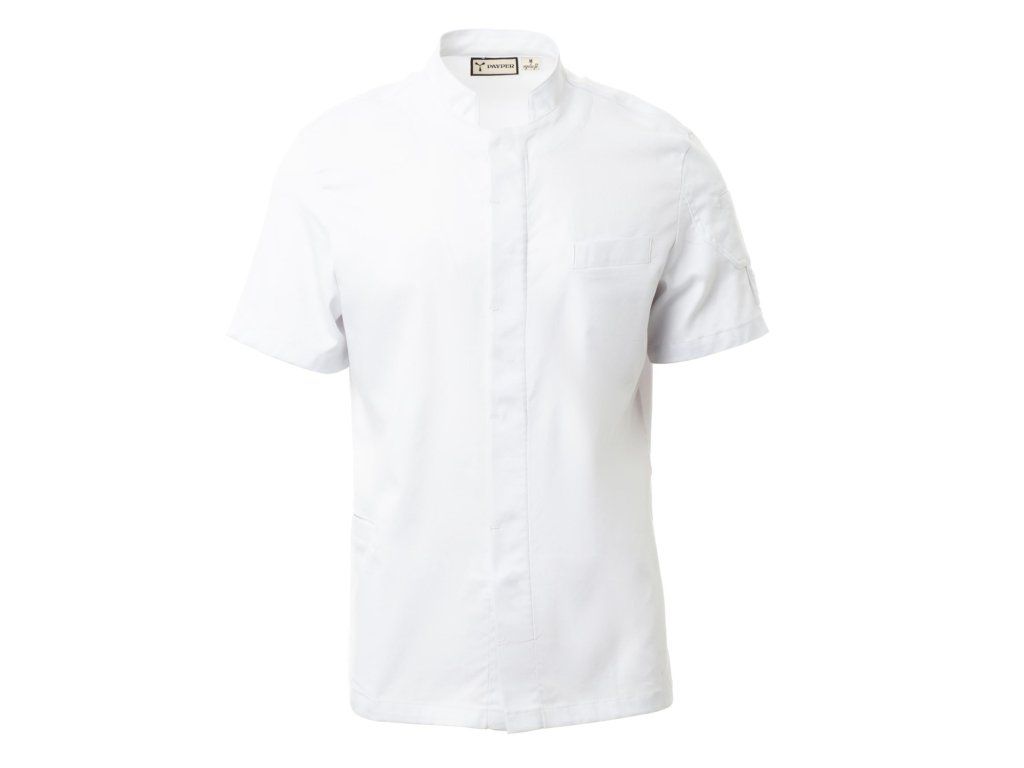Moderní pánský kuchařský rondon s krátkým rukávem, vyrobený z bavlněného kepru s příměsí elastického vlákna Lycra® T400®, který poskytuje vynikající pružnost, volnost pohybu a vysokou prodyšnost, což z něj činí ideální oděv pro profesionální kuchaře pracující v dynamickém prostředí.