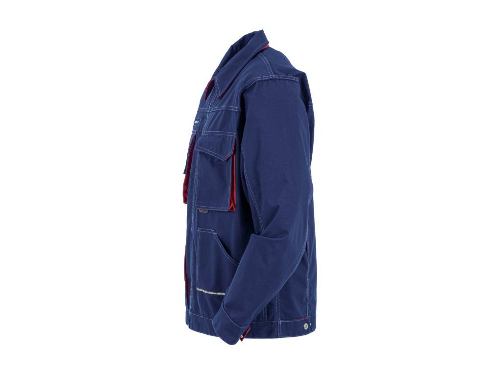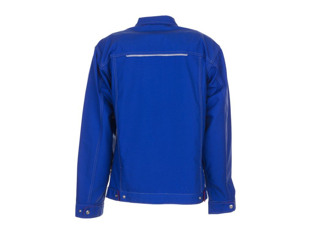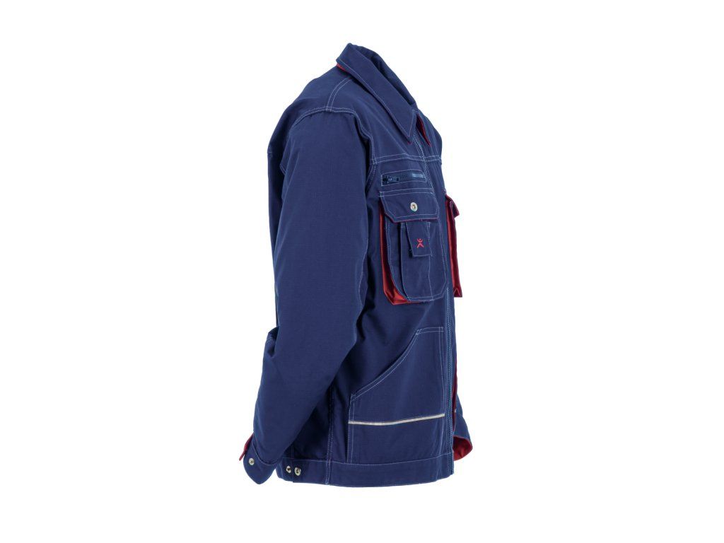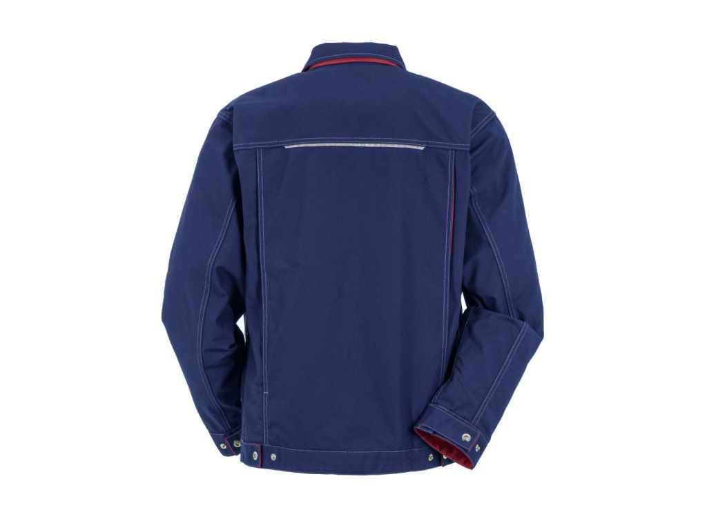 Bunda má zúžený střih v pase, který lze snadno upravit pomocí druků, takže si ji přizpůsobíte přesně podle své postavy. Díky záhybům na zádech máte při práci zajištěnou volnost pohybu v ramenou a pažích – i při častém ohýbání či manipulaci s nářadím. Klasický ohrnovací límec navíc chrání krk před průvanem.